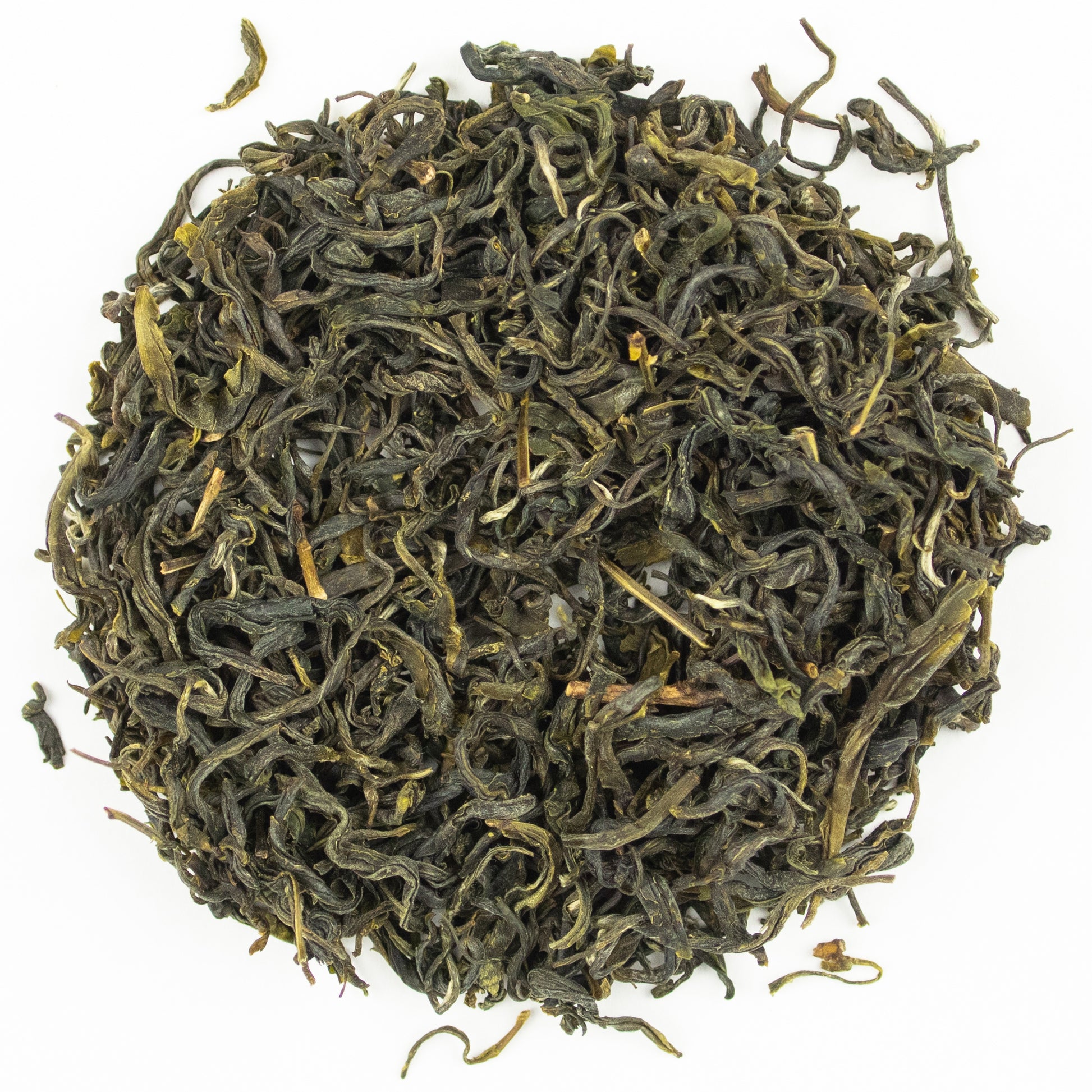 Plantagenbeschreibung: Der mao Feng wird Anfang April, in Höhenlagen von 500 bis 600m geerntet. Das Anbaugebiet liegt nahe dem Berg "Jiu Long Shan" (Berg der neun Drachen). Aufgrund der seiner "wilden" Blattstruktur wird er auch als "Criss Cross" genannt.