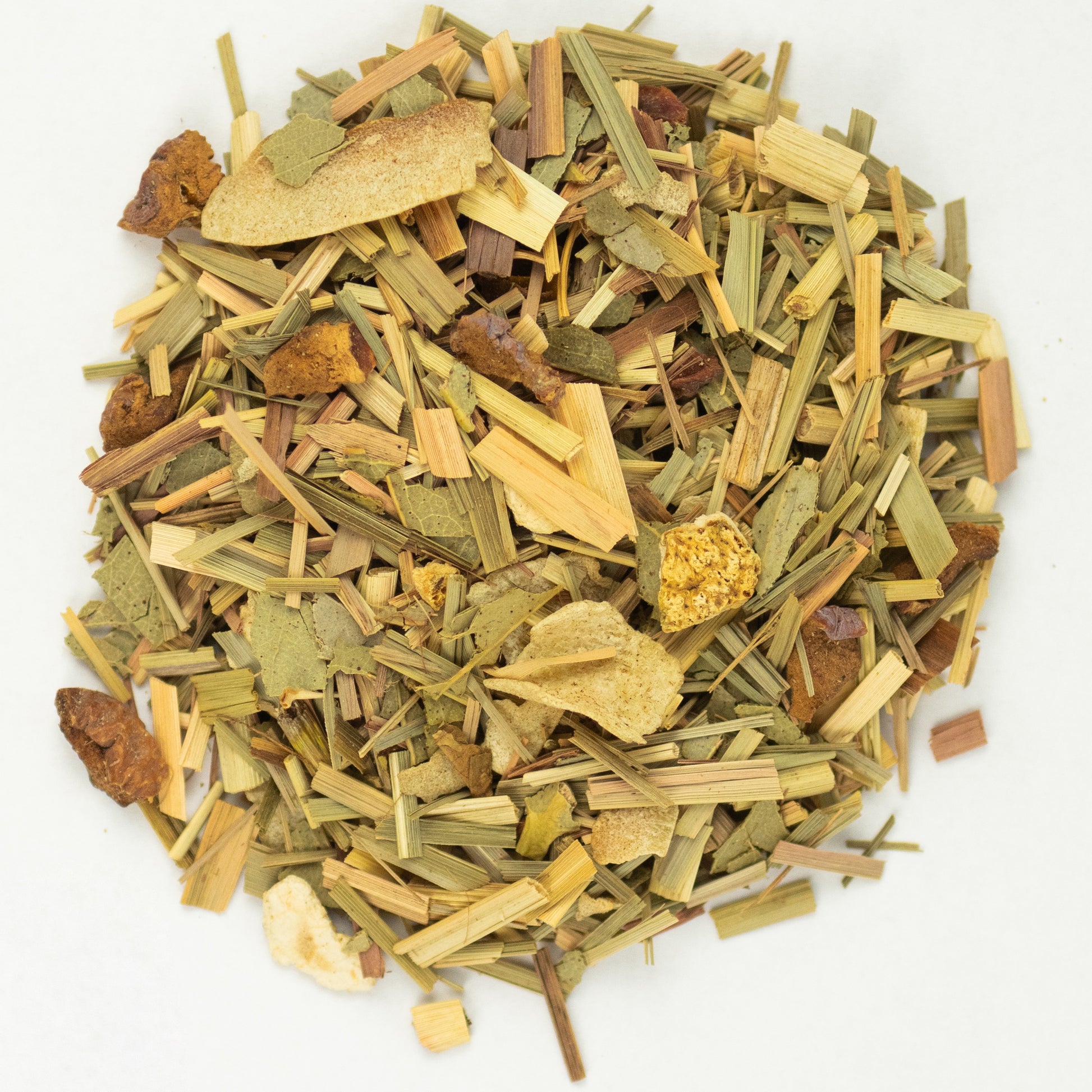 Zutaten: Zitronengras, Eukalyptusblätter, Apfelstücke, Orangenschalen, geröstete Kokoschips,
