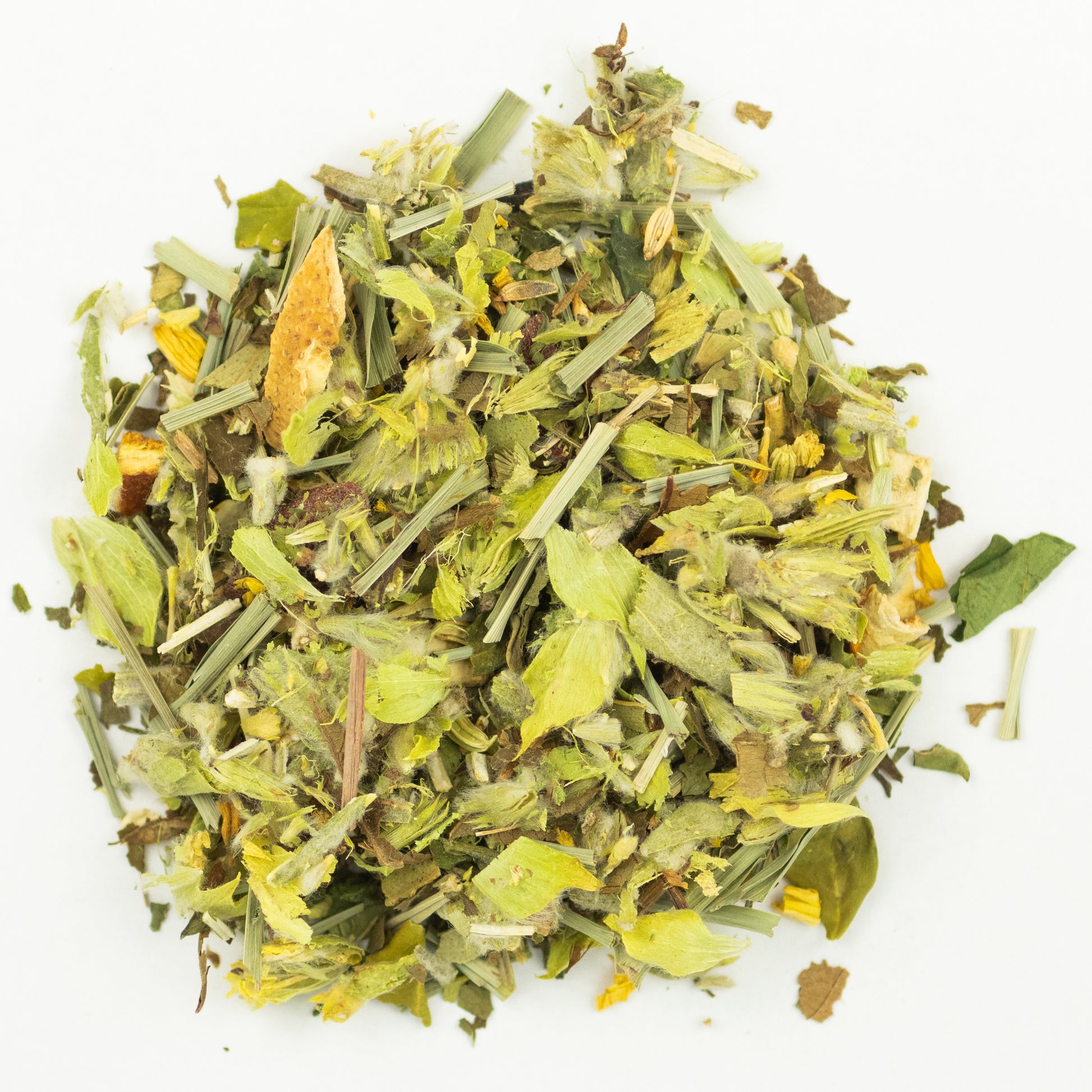 Zutaten: griechischer Bergtee, Fenchel, Orangenschalen, Zitronengras, Eukalyptusblätter, süße Brombeerblätter, Moringablätter, Zitronenschalen, Krauseminze, Gojibeeren, Sanddornbeeren, Sonneblumenblüten,