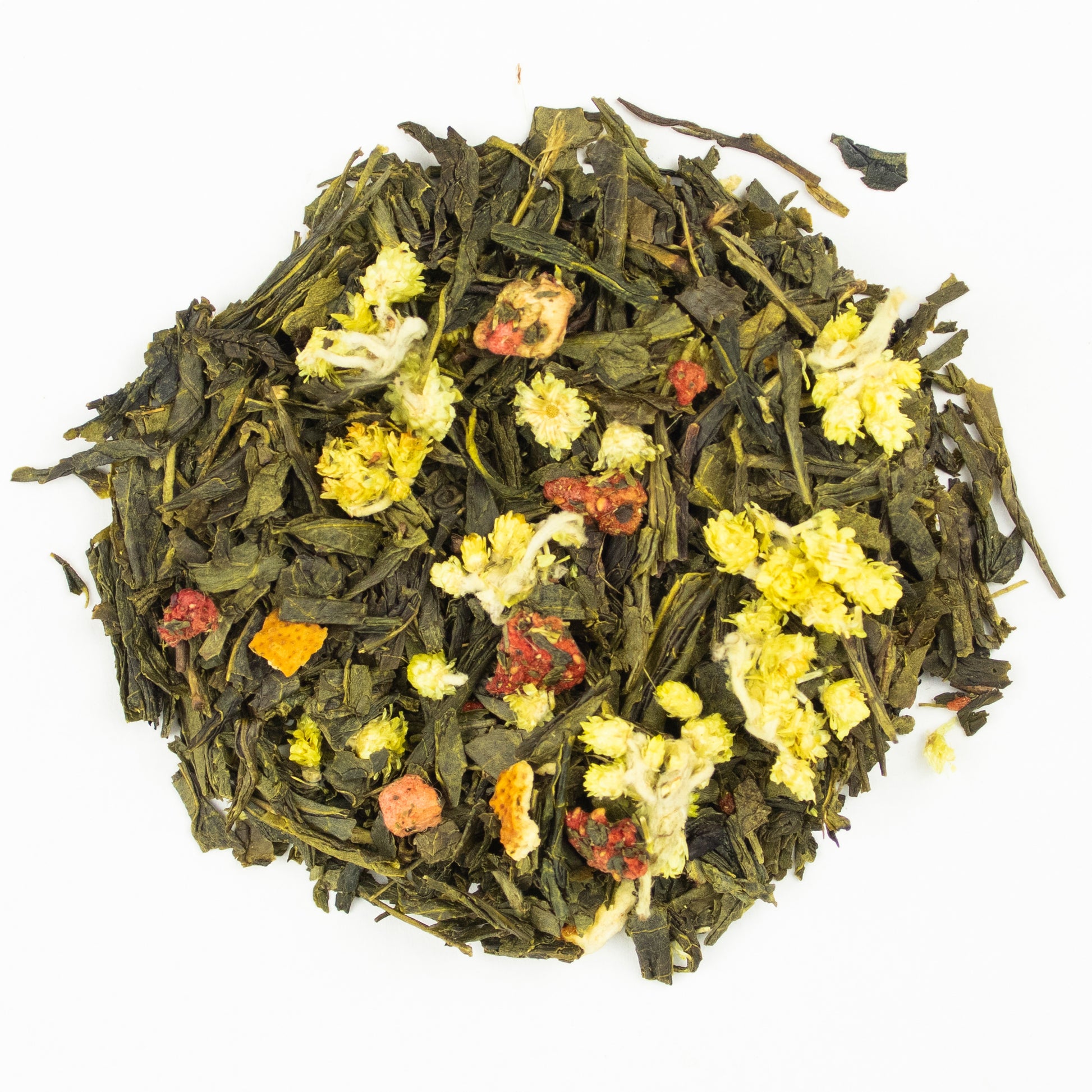 Zutaten: grüner Tee(93%), Orangenschalen, Katzenpfötchen, gefr.-getr. Erdbeerstücke