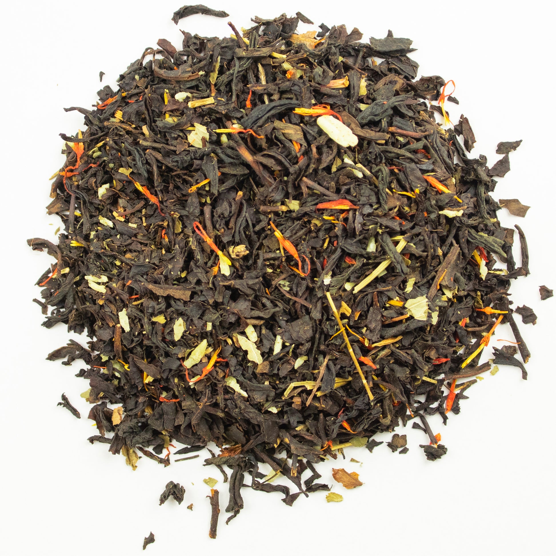 Zutaten: schwarzer Tee (90%), Kokosraspeln, Walderdbeerblätter, Aroma, Färberdisteln.