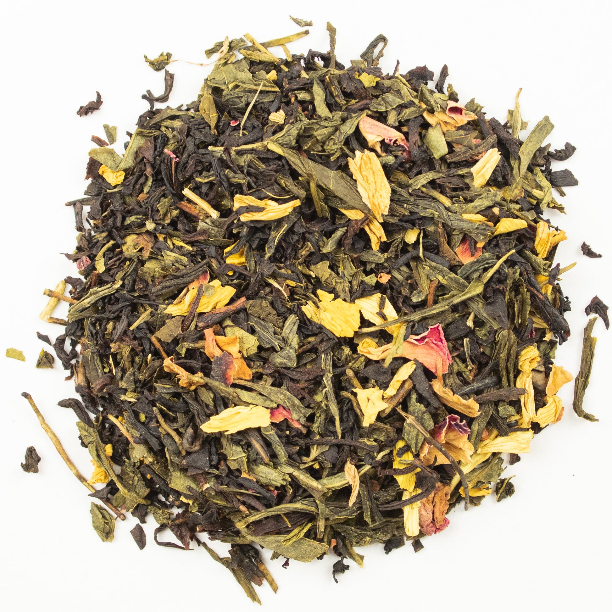 Zutaten: schwarzer Tee (52%), grüner Tee (44%), Rosenblüten, Sonnenblumenblüten, natürliches Aroma.